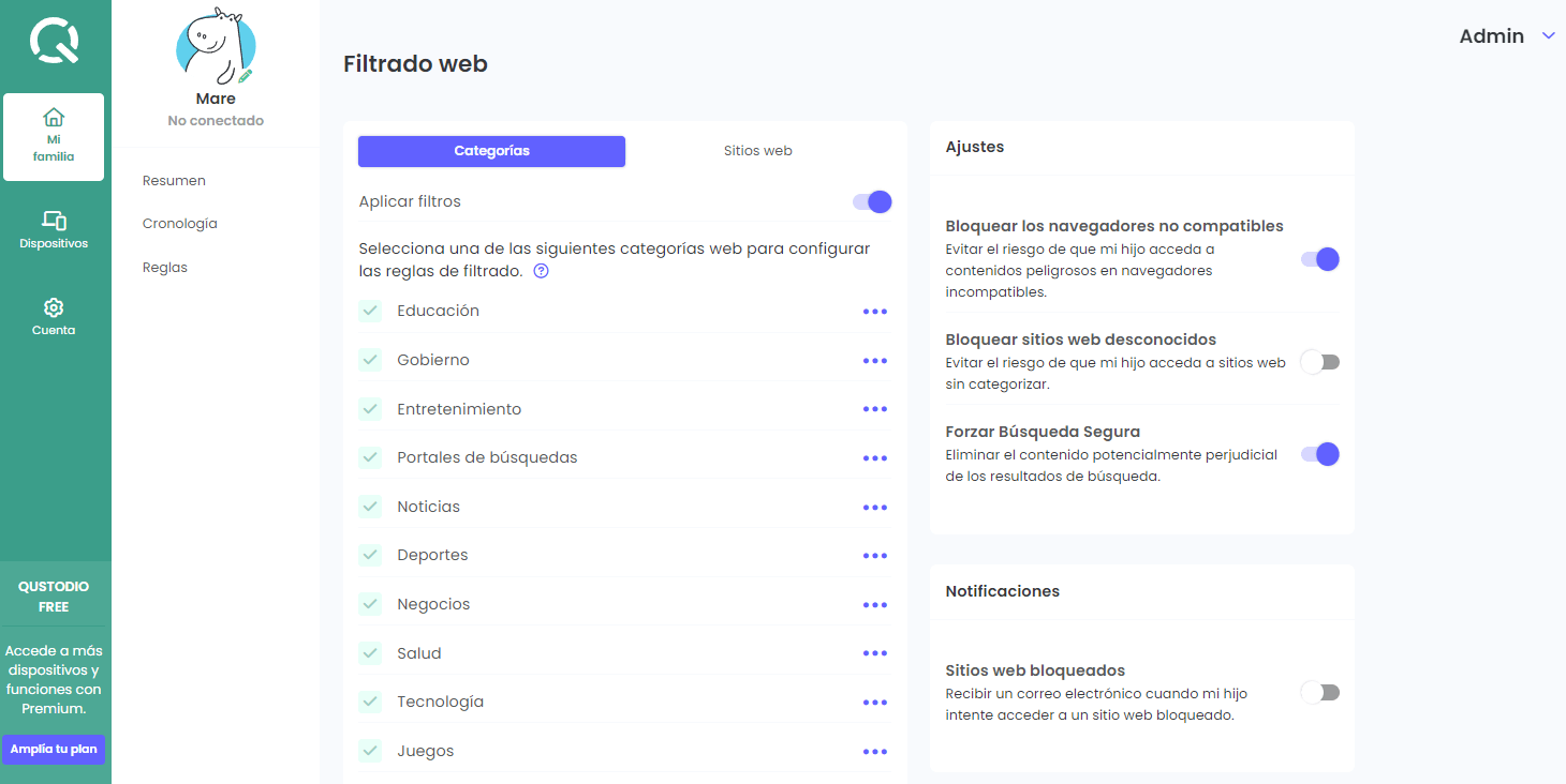 - Gratis o Paga: Qustodio es de Pago pero ofrece un plan gratuito.